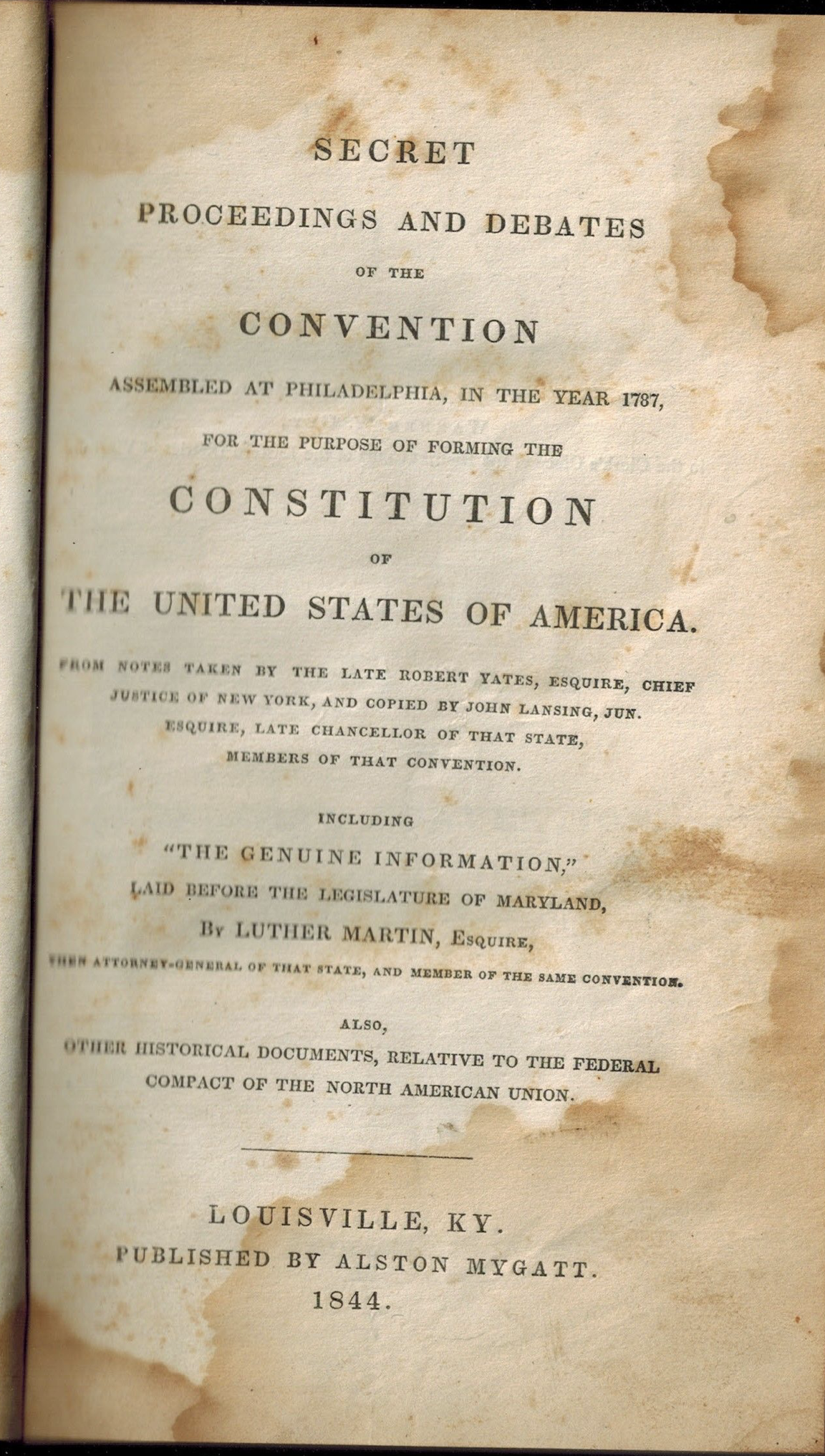 In 1838, Mygatt published from Cincinnati, OH, "Secret-Proceedings-and-Debates-of-the-Convention-Assembled-at-Philadelphia-in-the-Year-1787-for-the-Purpose-of-Forming-the-Constitution-on-the-United-States-of-America"-Martin-Luther. Publisher Alston Mygatt, 1838. Cincinnati, OH:
