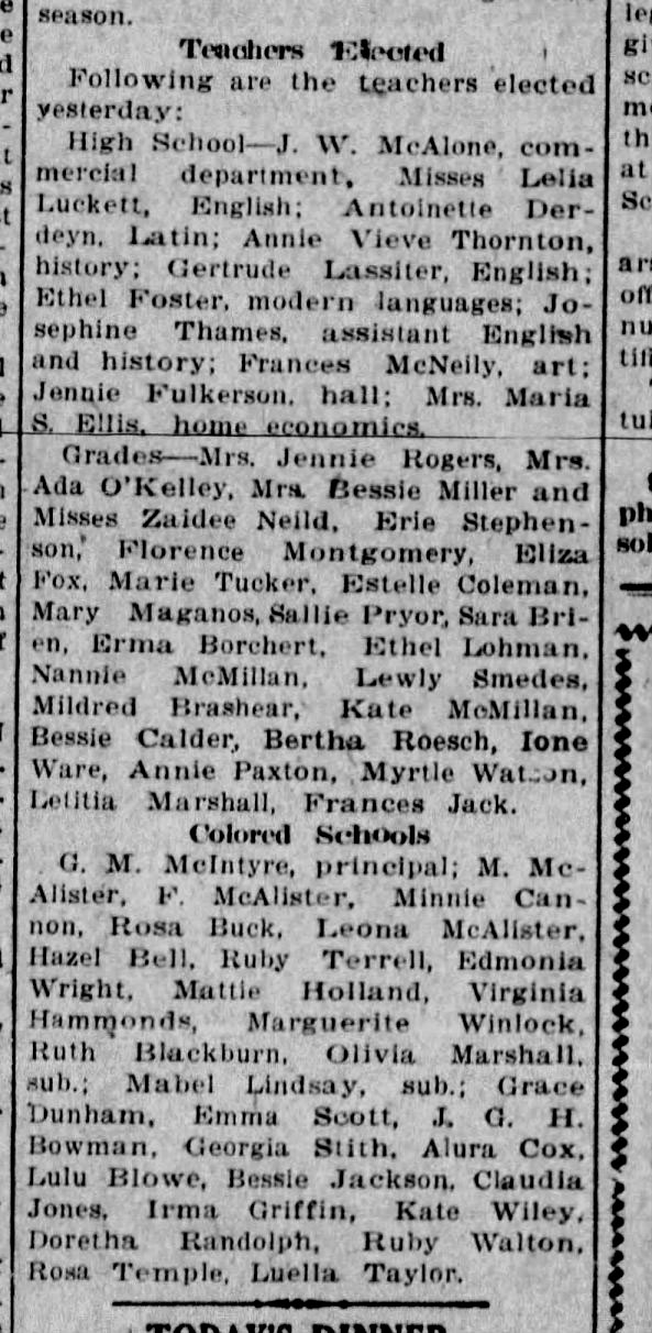 Below is some research on various people in this list of teachers. The census records which list occupation only list 3 of the 13 people I have researched as teachers. An eighth grade education was deemed adequate for these schools, There was very little college training for African-American teachers.