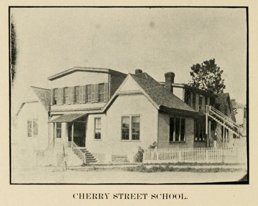 White School - Emma Curtch, Miss Badcock, Mrs. S. C. Woods, Miss Mollie Thompkins, Miss A Lamb, Miss A. Martin, Mrs. Charles, Miss Clark and Miss Moore.