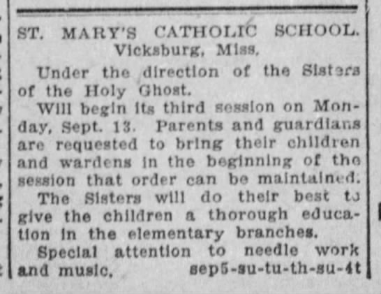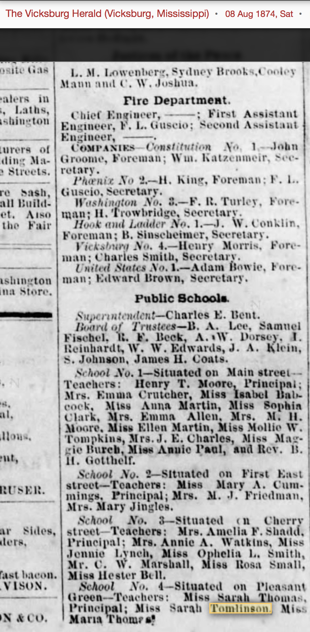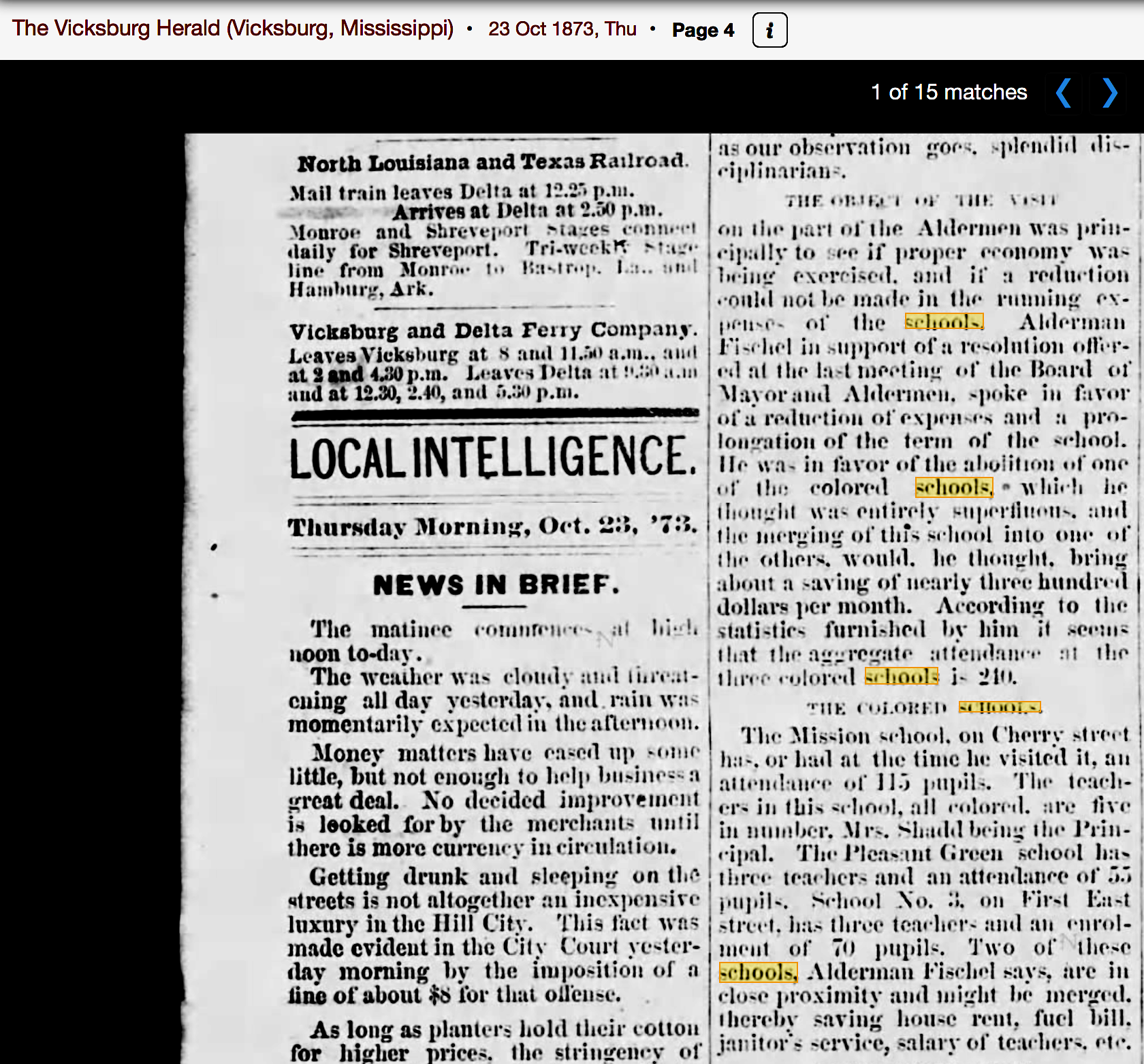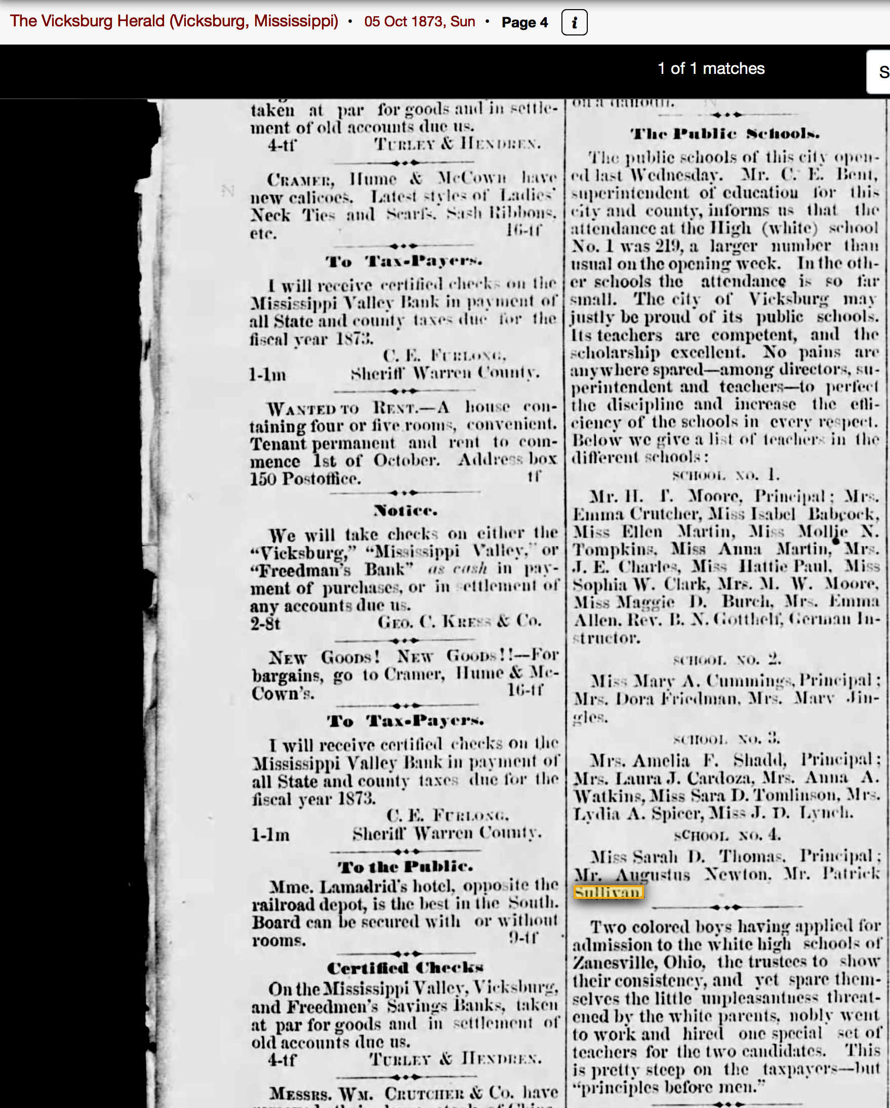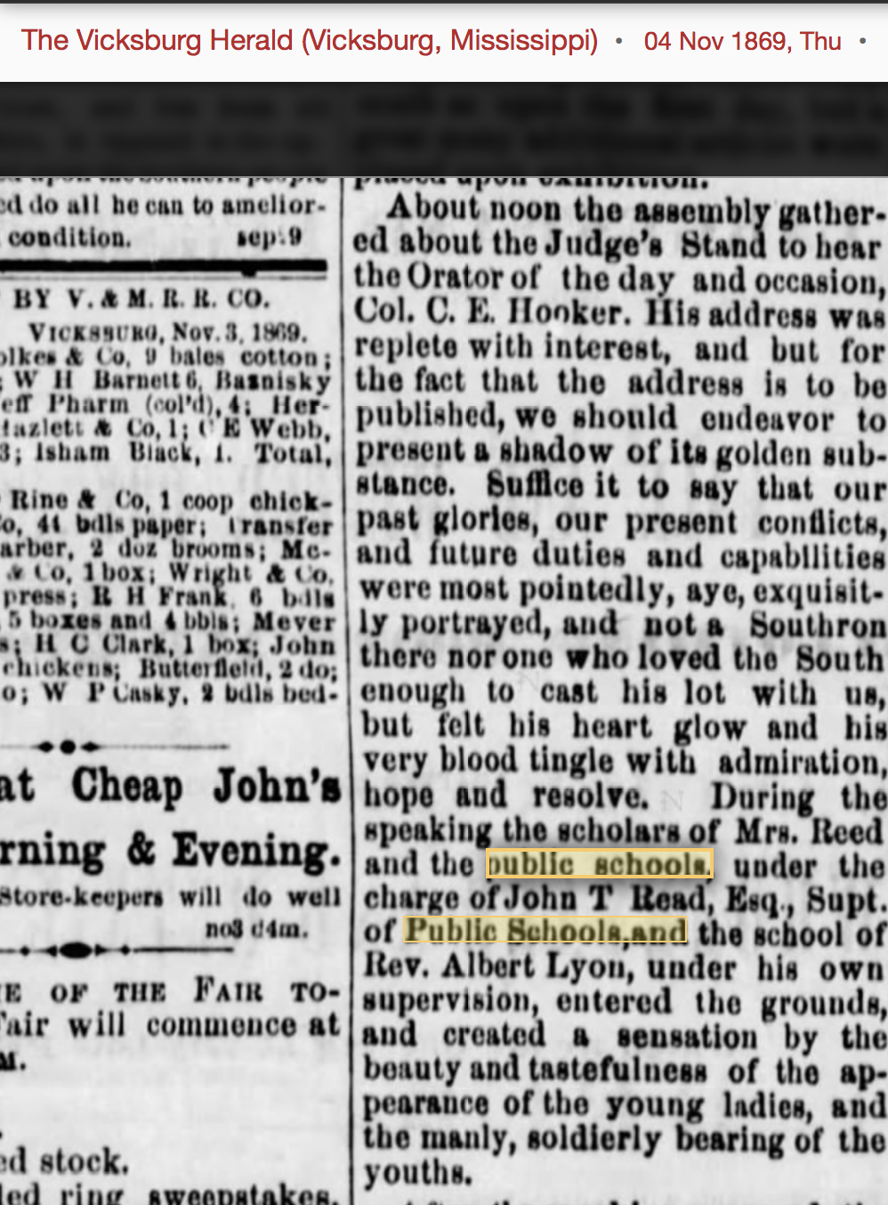 1869—Public Schools mentioned in The Vicksburg Herald.