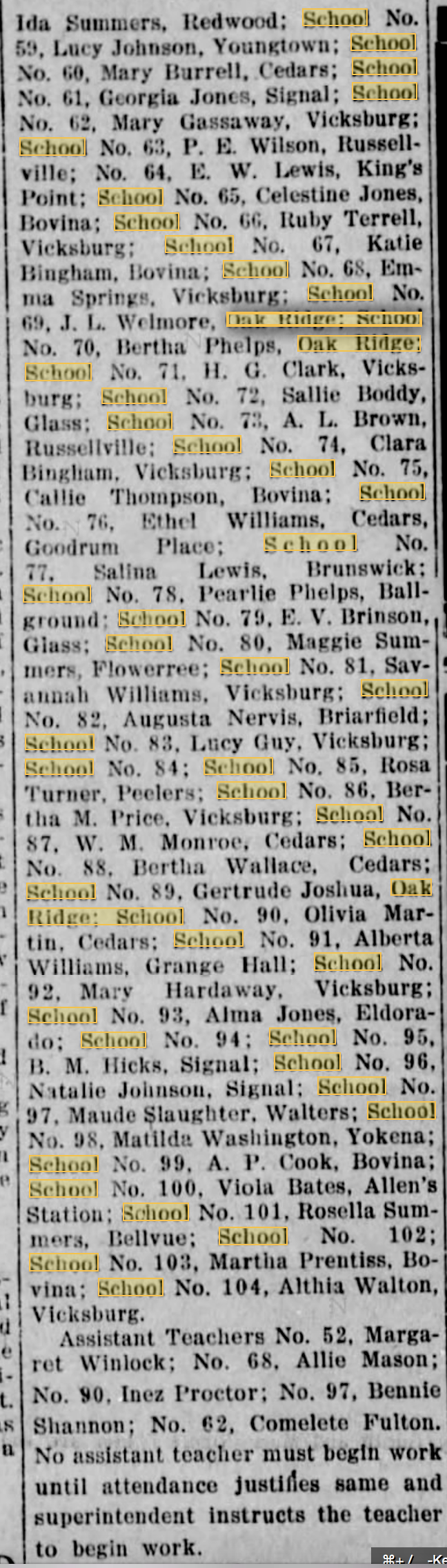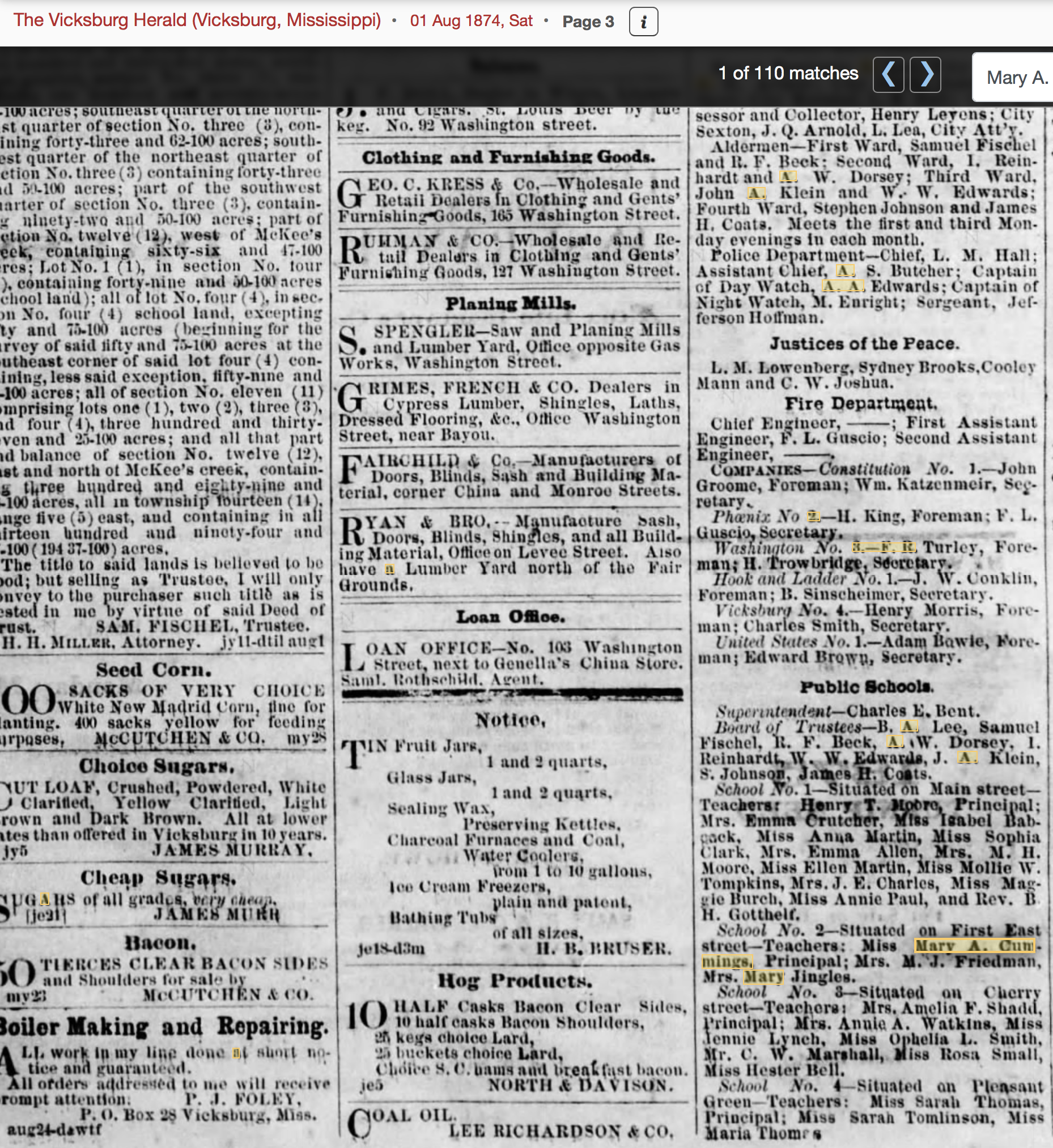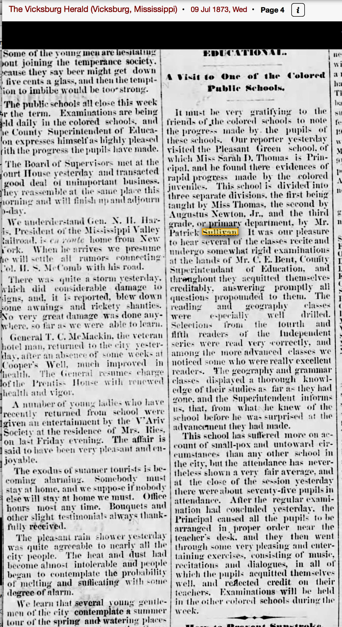 1872—Here we have an article (posted by Charles Bell) related to a school board meeting in Vicksburg. "