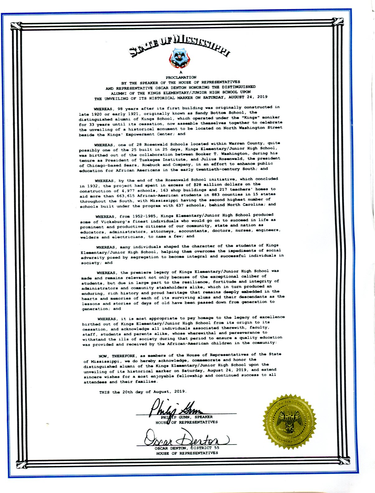 August 27, 1921—Vicksburg Evening Post reports that the Rosenwald foundation provided initially a quota of $75,000 for one year to the State of Mississippi for its Negro Schools. The fund was exhausted in one month and the Fund added an additional amount of $15,800, making the total $90,800. (An error in the article says the total of the two is $95,8000.)
