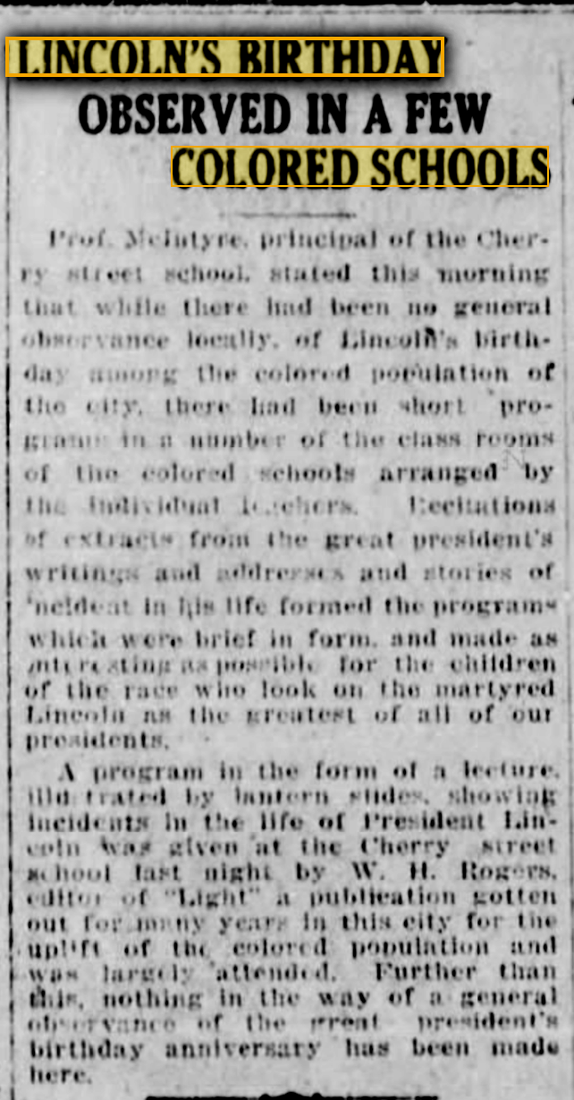 February 12, 1919–Vicksburg Evening Post mentions Lincoln's Birthday. There was no school wide observance.