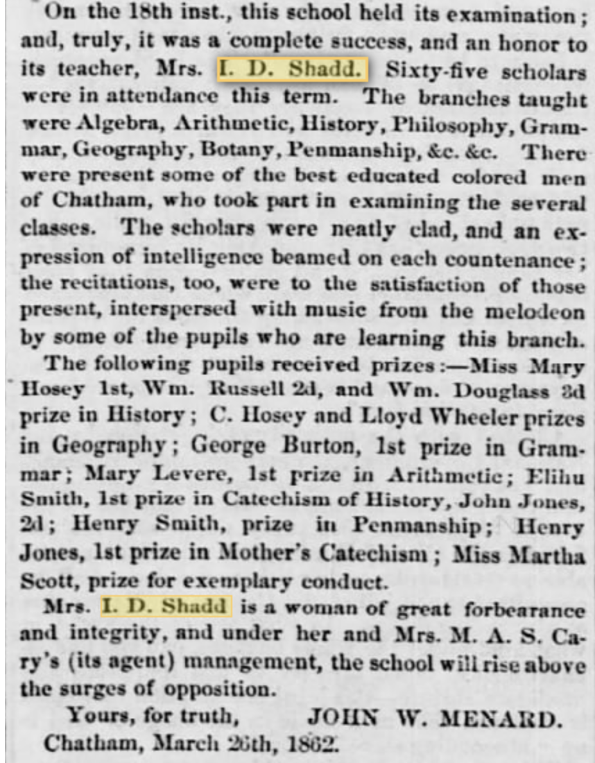 School #3: Amelia F. Shadd was the principal. She was born in Kentucky about 1833. She is an African-American (mulatto) and was living in Davis Bend, Warren, MS in 1870. Appears to have a son Charlton Shadd age 19 living with her. Charlton is born in Canada. In 1861, Amelia is teaching school in Chatham, Canada. Gavin Shadd, a farmer is living with her. Laura J. Cardoza She was married to Thomas W. Cardoza, a black man, who became Superintendent of Education in MS in 1873. Mrs. Anna A. Watkins. In 1871, Anna opened an account in the Freedman's Bank. She is widowed and is teaching for the U. P. Mission School Board in Vicksburg. She has a brother H. L. Williams.