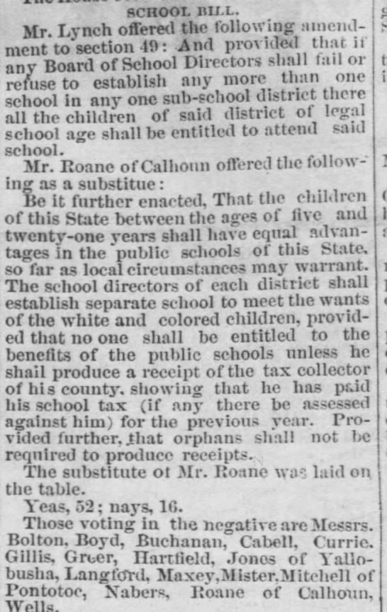 1870—Below from The Weekly Mississippi Pilot Jackson, Mississippi 18 Jun 1870, A bill in the Mississippi Legislature.