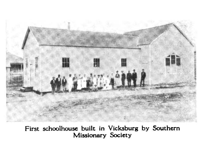 The Peabody Fund reportd in 1868 that there were 3000 children of school age in the city of Vicksburg one-half of whom were African-American, and there were 1130 African-American children in school. The fund provided $2000 for white students. Nothing for the African-American schools. The Negro pupiles were likely all in Freedmen's Bureau schools. Teachers were probaly from The Society of Friends, the American Missionary Association, and the Western Freedmen's Aid Commission.