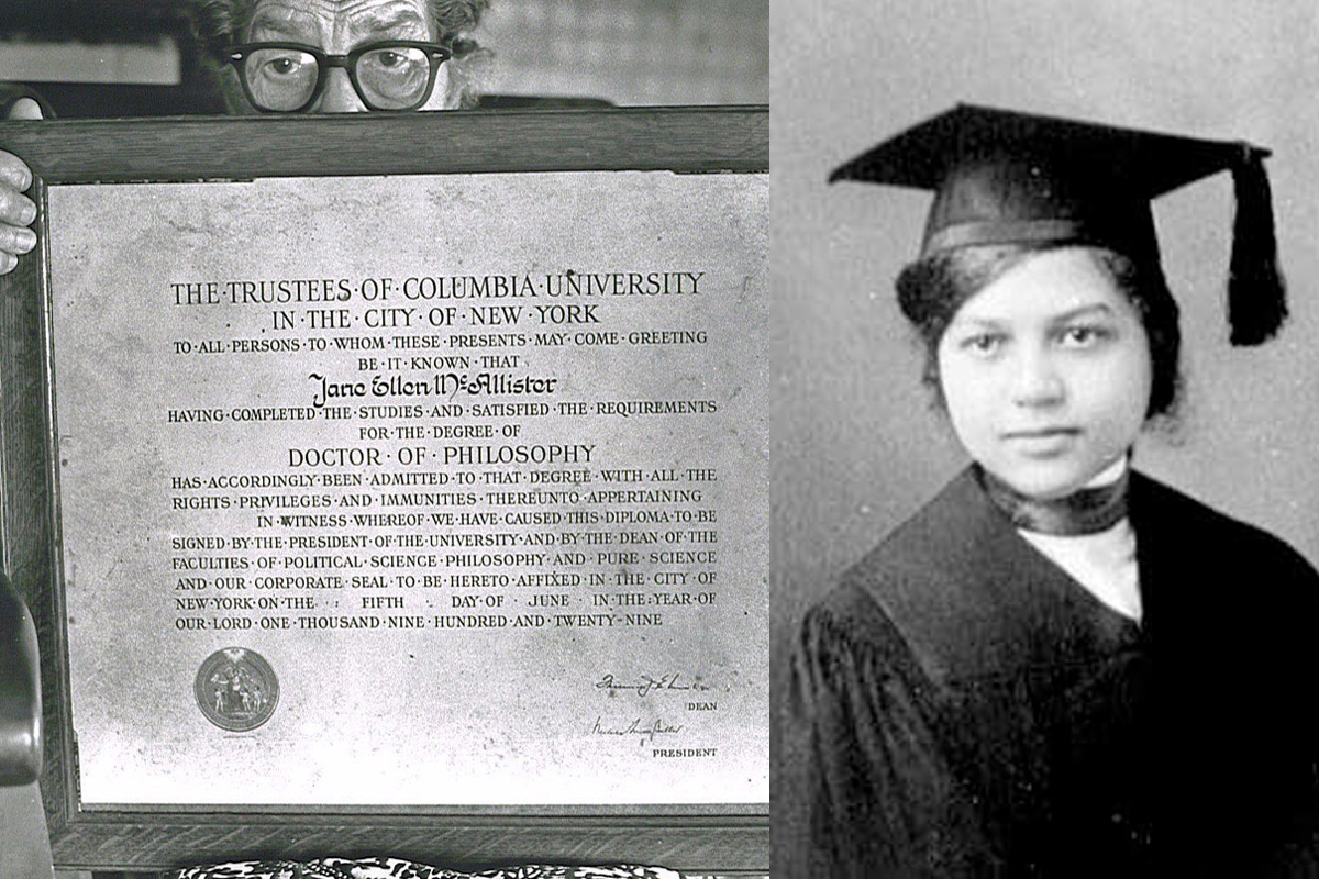 Dr. Jane Ellen McAllister and PhD diploma from Columbia U.